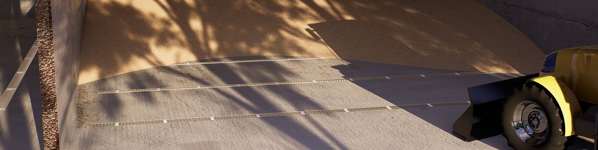 Lorsque pour des raisons techniques la reprise des céréales doit se faire avec un angle ou perpendiculairement aux lignes de ventilation, les opérations de reprise des céréales deviennent plus compliquées, et les grilles de ventilation peuvent facilement être endommagées par les engins de manutention. Ces chocs répétés entraînent souvent des réparations coûteuses et une usure prématurée du sol et des équipements.